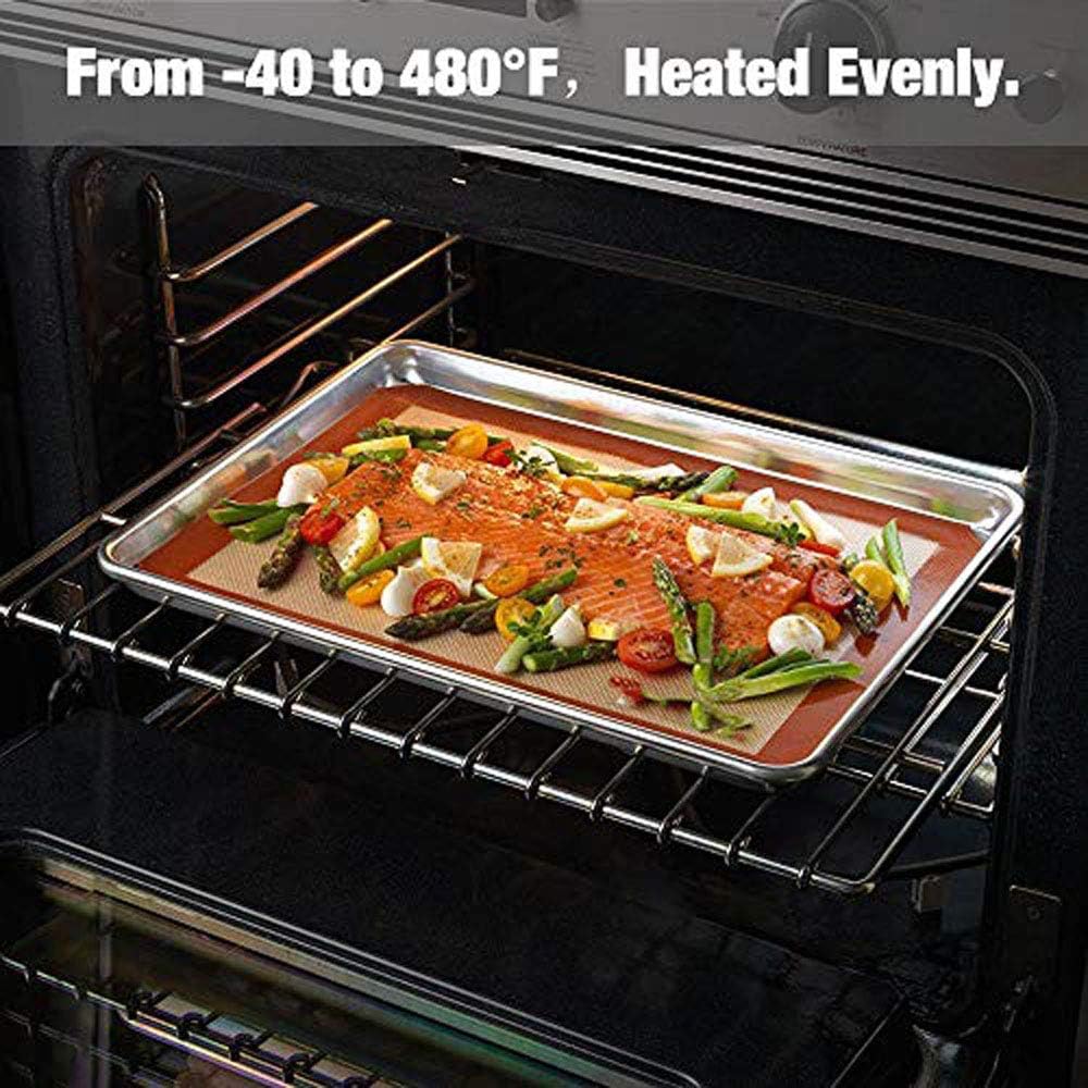 - IMPRESS WITHOUT THE MESS:Tired of scrubbing and soaking? We know how time consuming cleaning baking trays can be! Ditch the parchment paper and make your nonstick baking simple, there’s no need for fats, oils, sprays or butter. Easy to clean - Toffee? Caramel? Macarons? Ditch the cleaning and keep the kitchen effortlessly gleaming. Simply wipe clean with warm soapy water, or pop them in the dishwasher after a quick sponge wipe. This well-kept chef’s secret is a must for every baker!