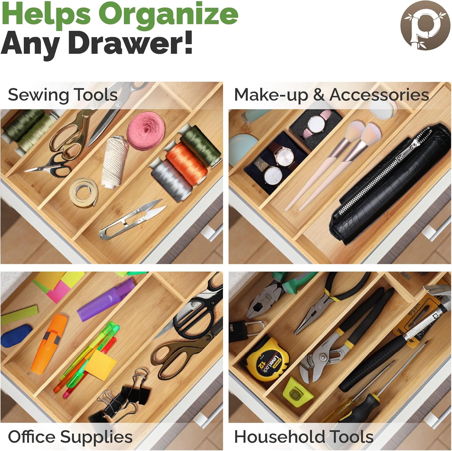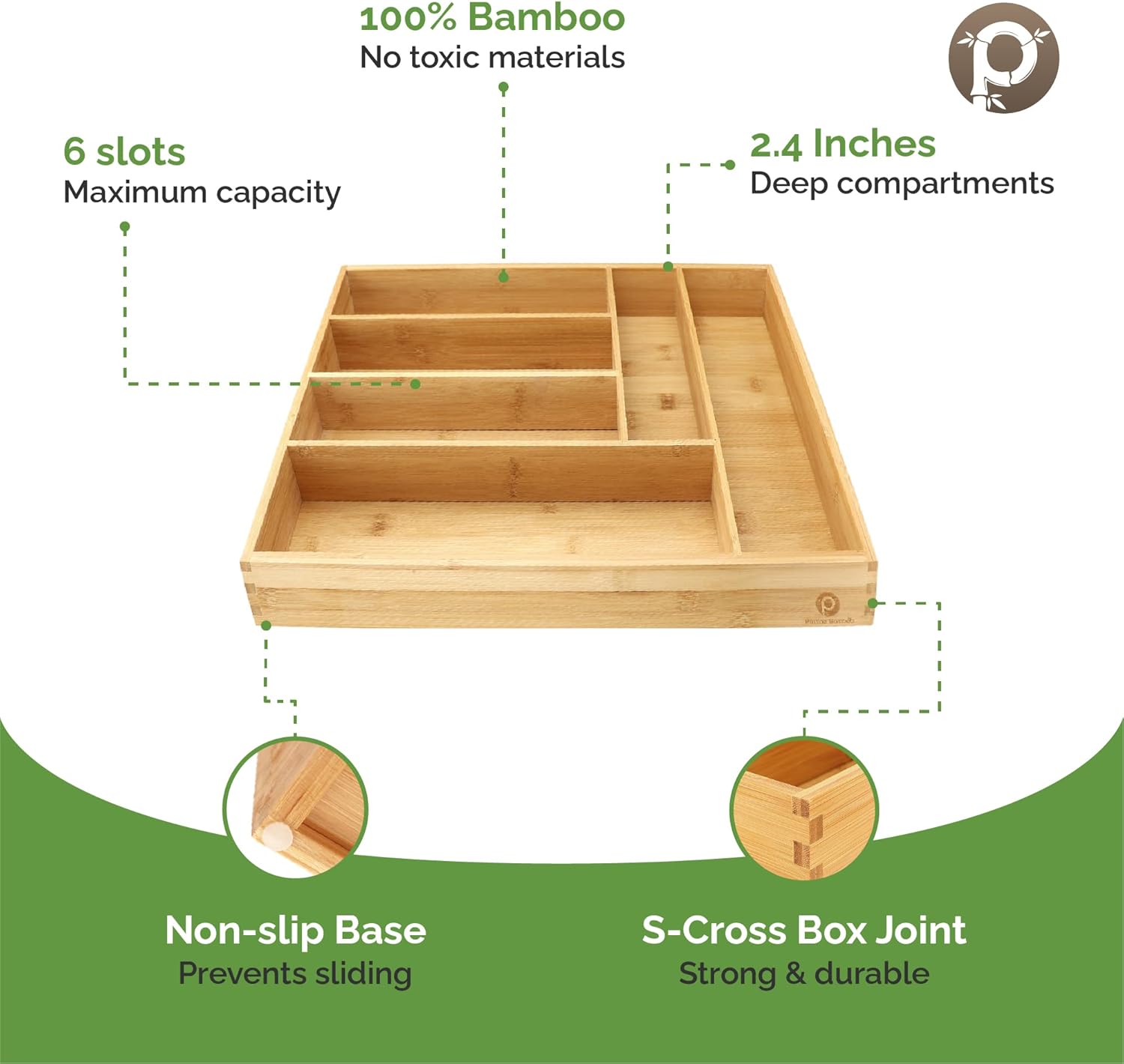 - SUPERIOR DESIGN SOLUTIONS: The only bamboo drawer organizer that offers all-in-one features: 100% bamboo (even the base), No Toxic MDF, Slip-resistant, Extra Depth, Strong & Durable Construction. This is undoubtedly the best drawer organizer available and our reviews are the testament of the quality.