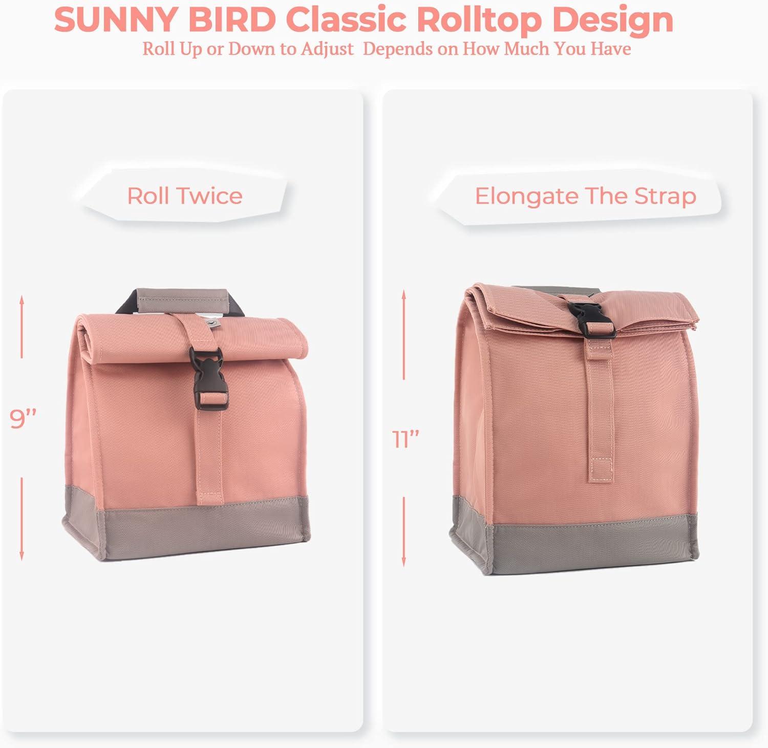 SUNNY BIRD Insulated Lunch Bag Pink Lunch Box Small Cooler Bag for Women, Girls, Adults and Teens (Pink with pink shoulder strap)