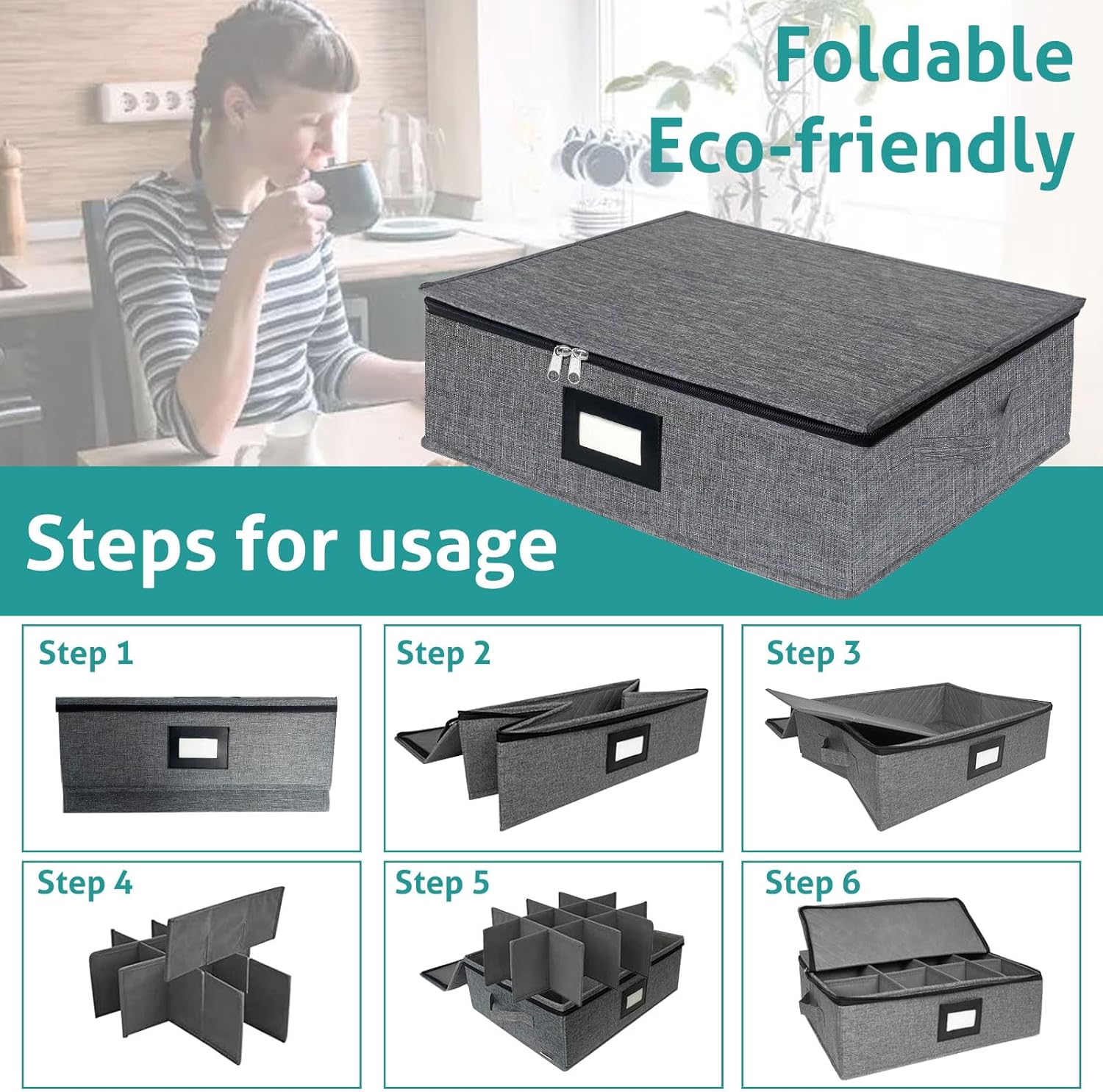 - đ„ăEasy AssemblyăMeasures 17" x 13"x 6", each cup storage containers has 12 padded compartments (4âx4â) to prevent items from being broken or chipped, dividers can be removed for oversized glasses.Exactly what you need to store and move your cups and mugs. Soft padding and sturdy sides & bottom for your drinkware will thanking you for such a nice place to be! You can fold it up when you're not using it,it is a really choice for your family.