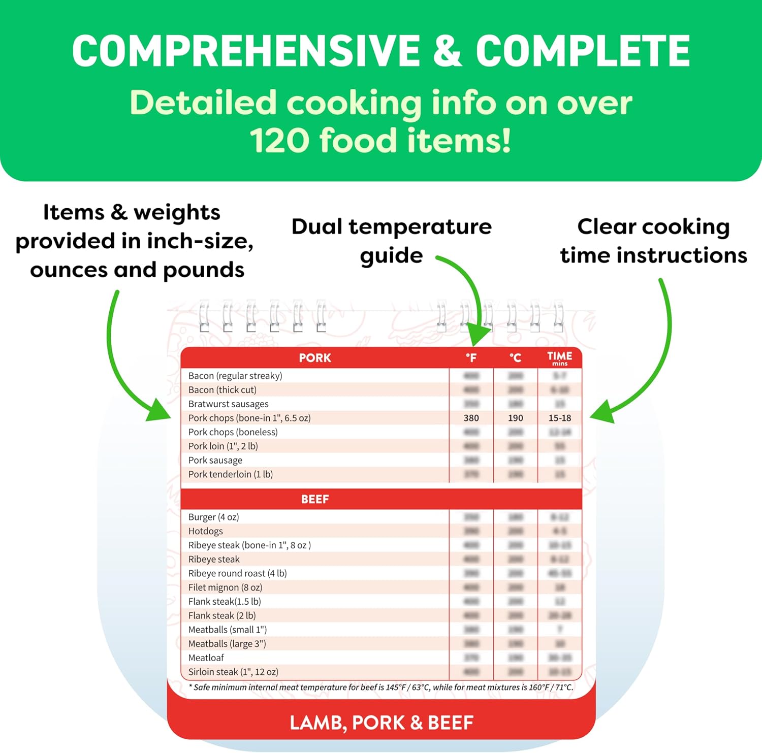 - Comprehensive and Beginner-Friendly. Handy air fryer cookbook guide with 120+ foods across 5 categories, this air fryer cheat sheet magnet offers precise cooking times and temps for meats, veggies, snacks, and more. Designed for accessibility and quick reference, this kitchen gadget helps beginners master air fryer recipes effortlessly - perfect for healthier, faster daily meals.