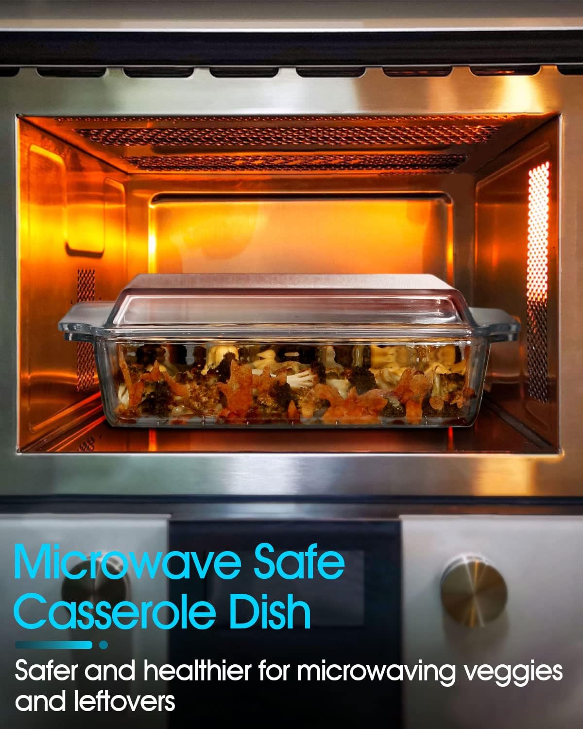 NUTRIUPS 8 x 9.5 Inches Rectangular Glass Casserole Dish With Glass Lid 2 Quart Glass Bakeware Glass Microwave Casserole Dish Glass Baking Dish with Lid