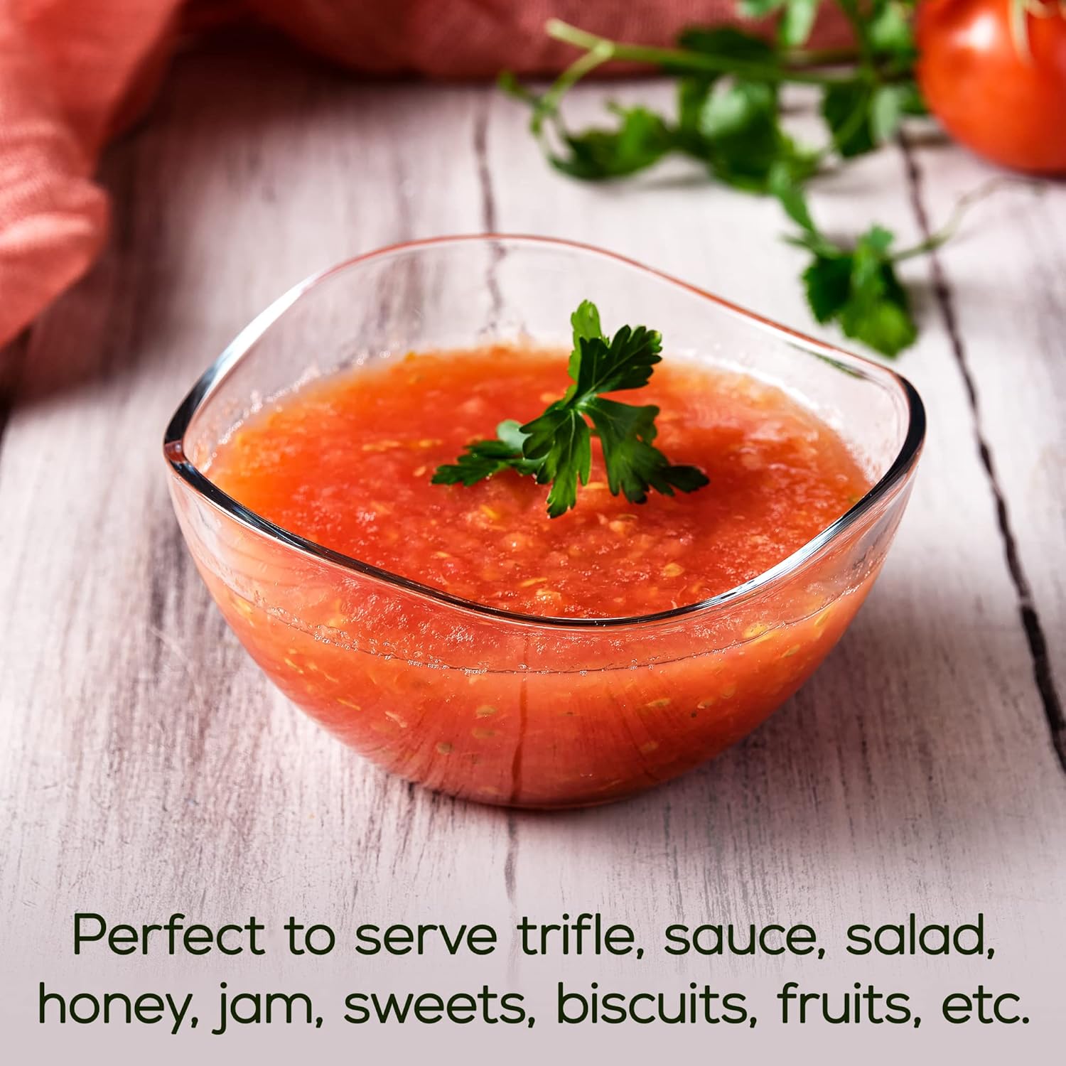 - MULTI-USE BOWL SET of 6: These perfectly sized 7 ¼ oz capacity mini pinch bowls are not only great as measuring ingredient bowls while cooking or baking, but also great for soups, snacks, side dishes, fruit salads, yogurt parfaits, trifle, oatmeal, cereal with milk, yogurt, desserts, and nuts. Perfect to serve honey, jam, sweets, biscuits, and fruits at home or at an event