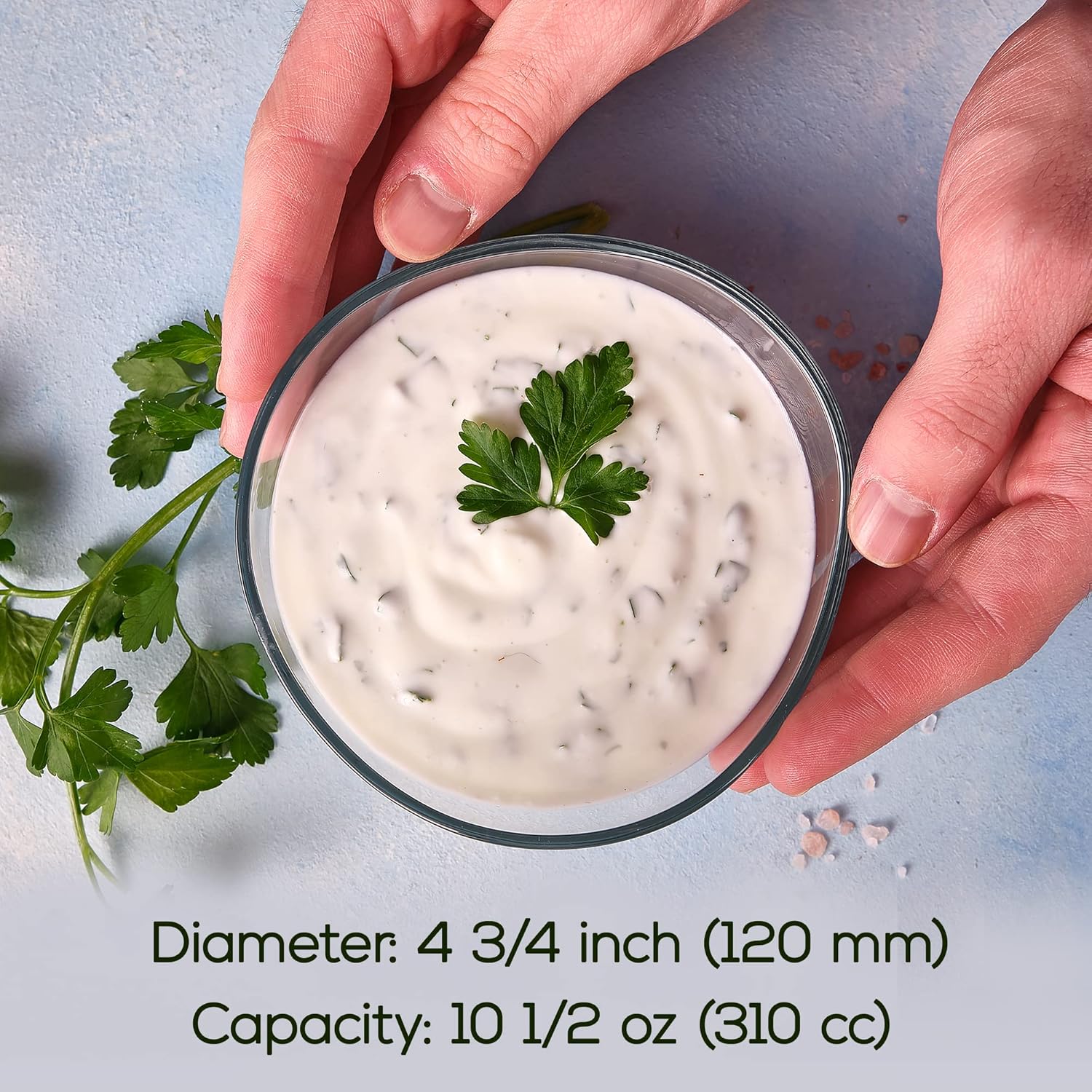 Volarium CRYSTALIA Small Glass Bowls for Kitchen Prep, Modern Round Serving Dishes for Dessert, Salad, Fruit, Pudding, Candy, Cereal, Ice Cream, Stackable Bowls Set of 6 (Large 10 1/2 oz)