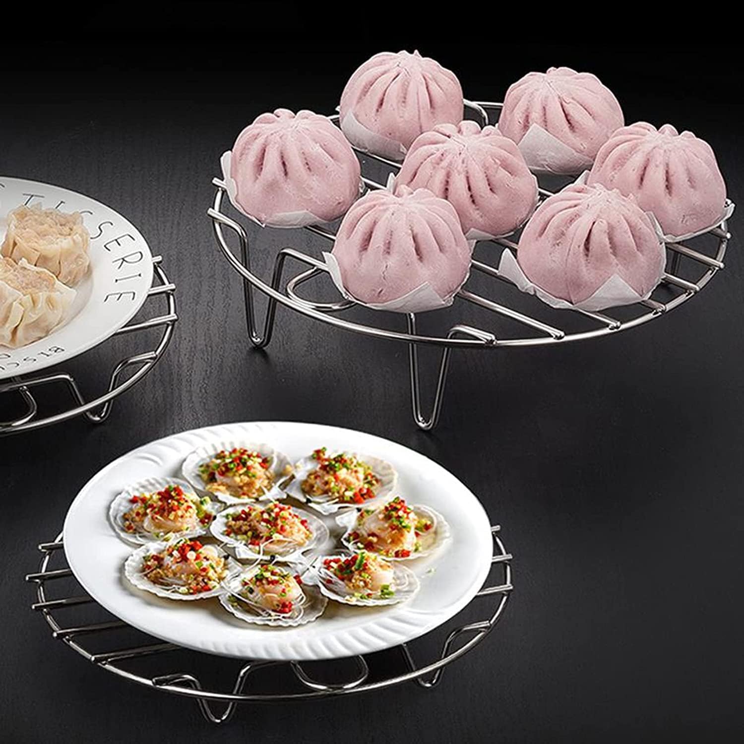 - VERSATILE -- The steaming rack is great for cooling and baking cookies, pies and cakes, steaming vegetables and meats to keep food away from grease, layering food for more cooking, and also as a pot holder, tripod for hot dishes . Multiple sizes to fit most air fryers, ovens, skillets, cast iron pans. (Please measure the inner wall size of the pot before purchasing)