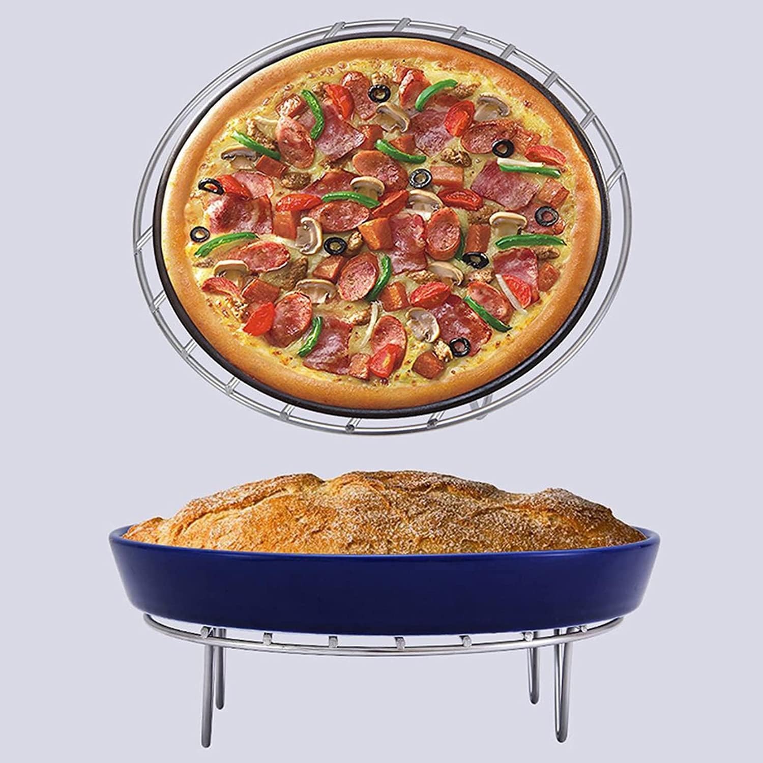 11" Round Cooking Rack Versatile Stainless Steel Grid Grill Steamer Rack, Fits Air Fryer Pot Pressure Cooker Canning