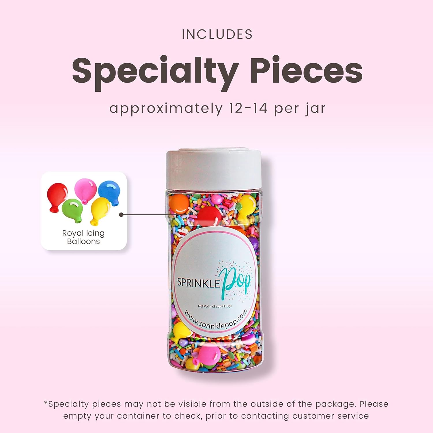 Sprinkle Pop Rainbow Birthday Sprinkle Mix| Red Orange Yellow Iridescent Rainbow Sprinkles with ~12 Royal Icing Balloons| Decorating Sprinkles Made in USA for Girl Boy Cakes Cupcakes Cookie Donut, 4oz