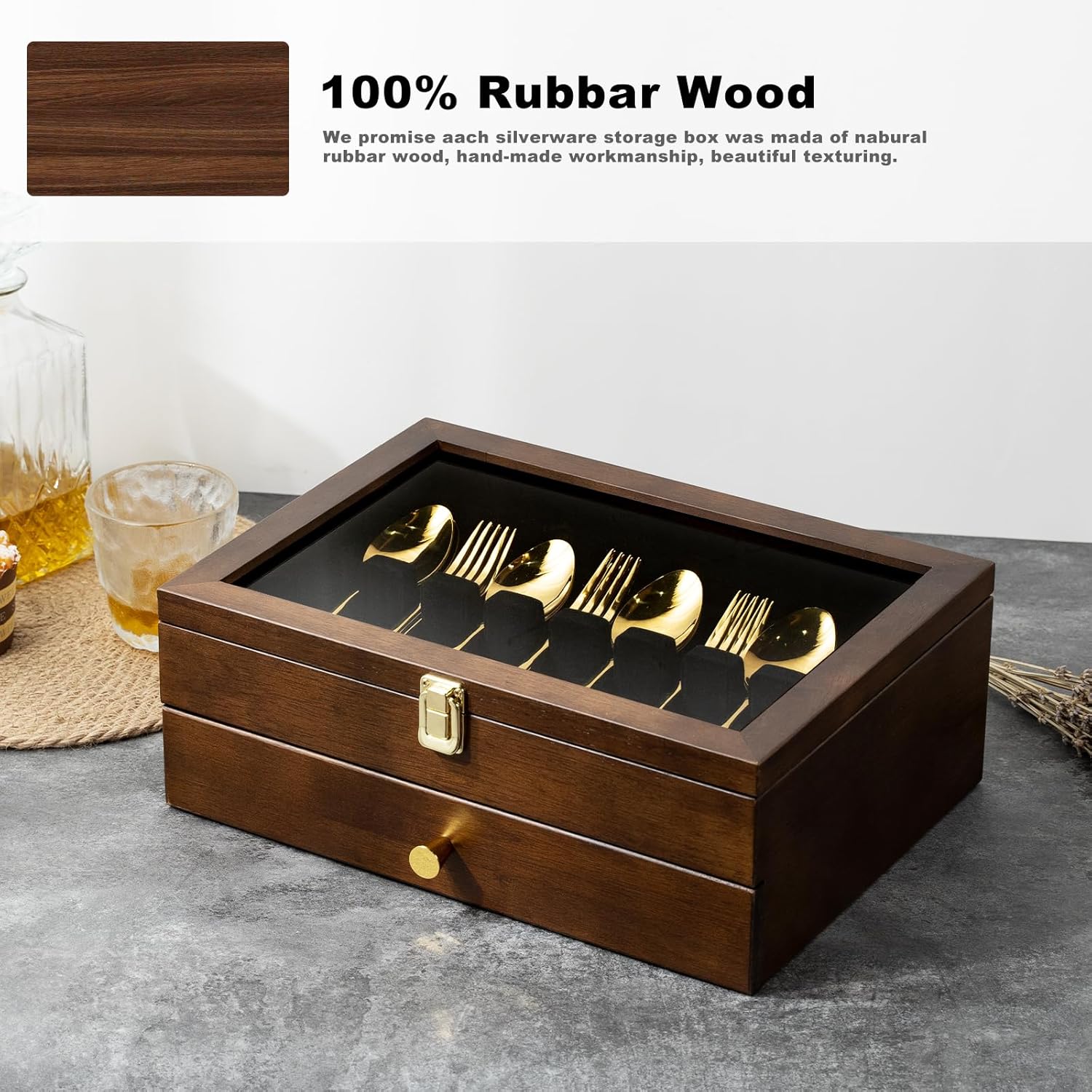 - Premium Silverware Organizer Case: Under the clear glass lid of this silverware organizer , all of your favorite silverwares are visible at a glance and well-protected from dust and provides plenty of space for organizing daily utensils or storing fine silverware that’s used for parties or special occasions.