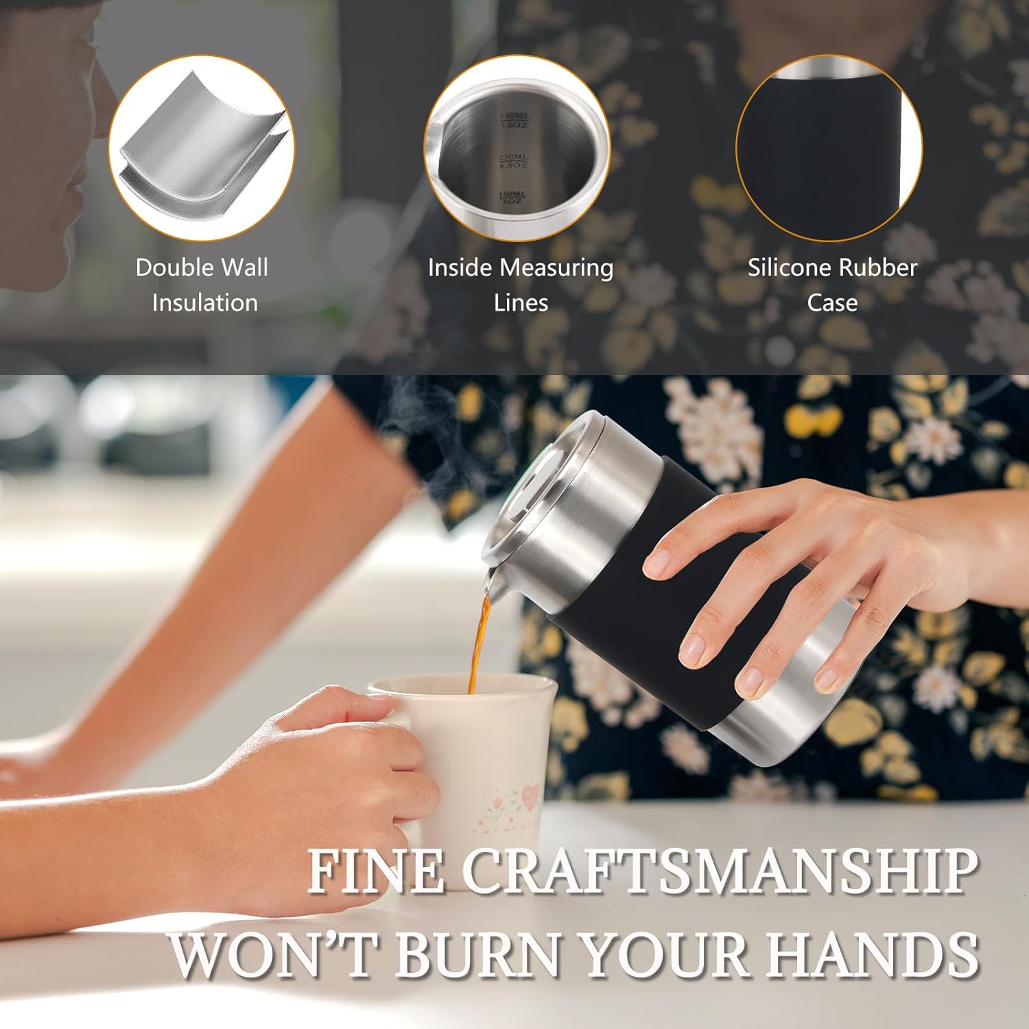- 3.WON'T BURN YOUR HANDS - Double wall design keeps your coffee hot while the silicone rubber case of french press helps to prevent your hand from burning and avoids slipping. Instead of handle, saving space and comfortable to grip.