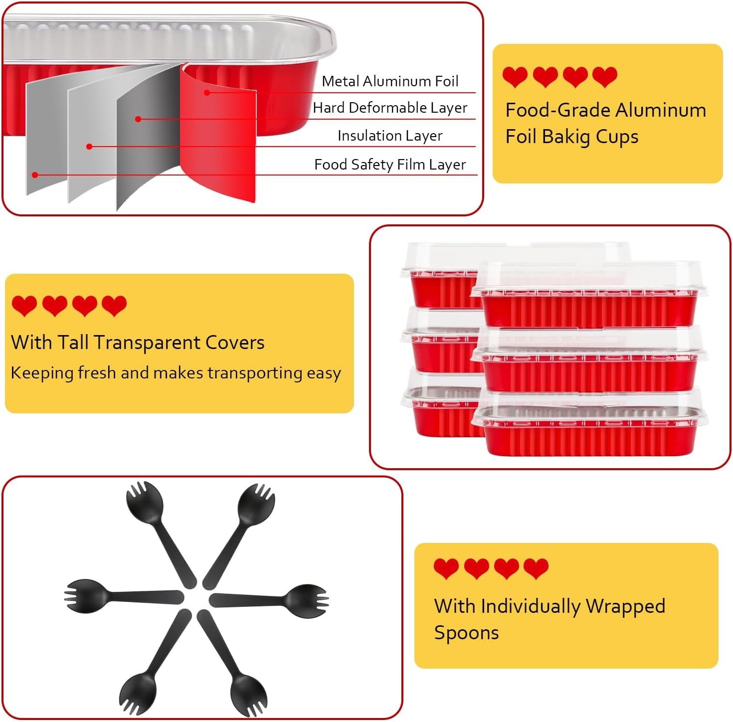 - ăPack of 100 Setsă - Including 100pcs mini cake pans with 100 clear lids,and 100 individually wrapped spoons.The mini loaf pan size:6.5âx2.5âx1.2â,the dome lids 0.8â high.Abundant small cake pans with lids are great for bake shops,big parties.