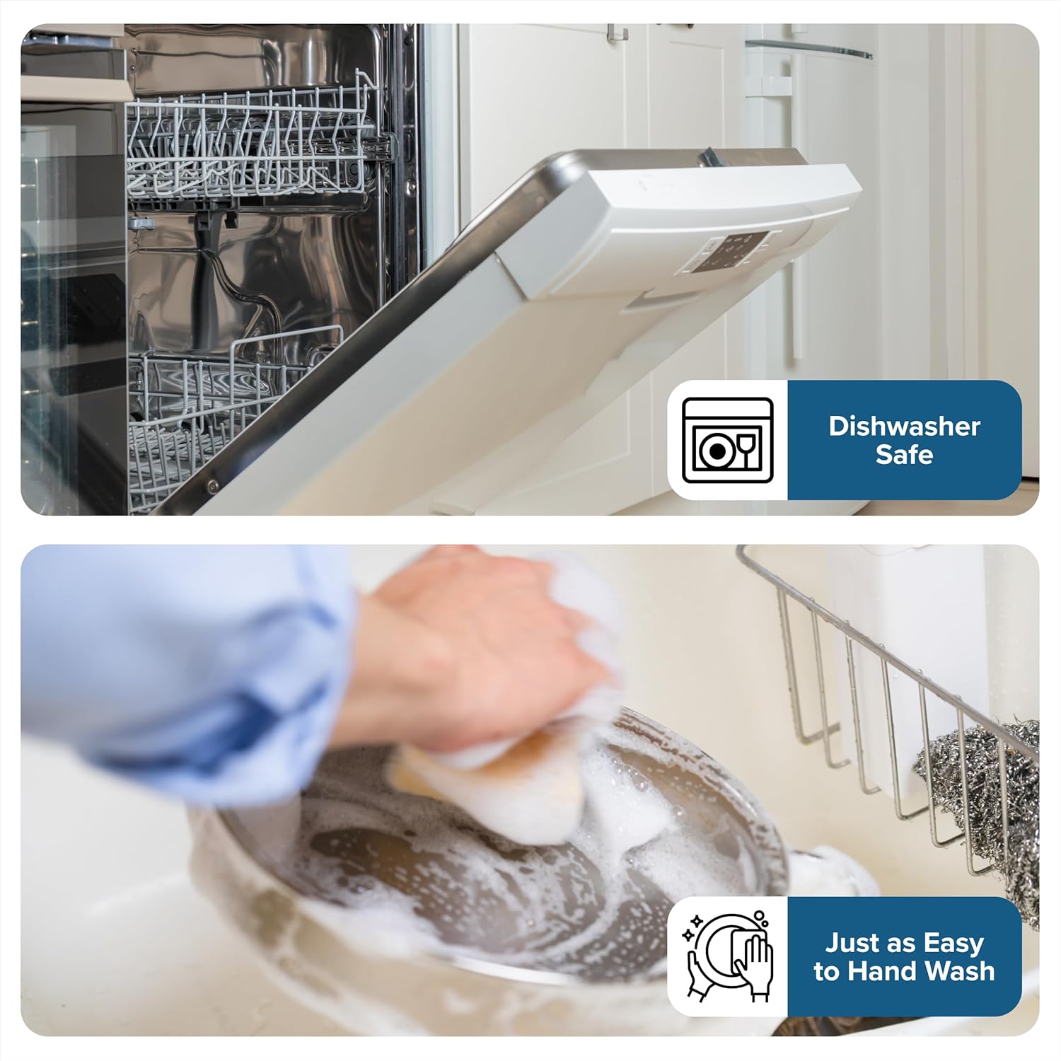 - STYLISH DURABLE DESIGN: Our kitchenware features a durable 3 ply construction consisting of a induction capable 304 non-reactive stainless steel interior and exterior with an aluminum core, and features a sleek polished finish and rolled rims which allow for easy drip-free pouring and provide an excellent complement to modern kitchen decors; our professional cookware is easy to hand wash with hot water, and is also dishwasher safe