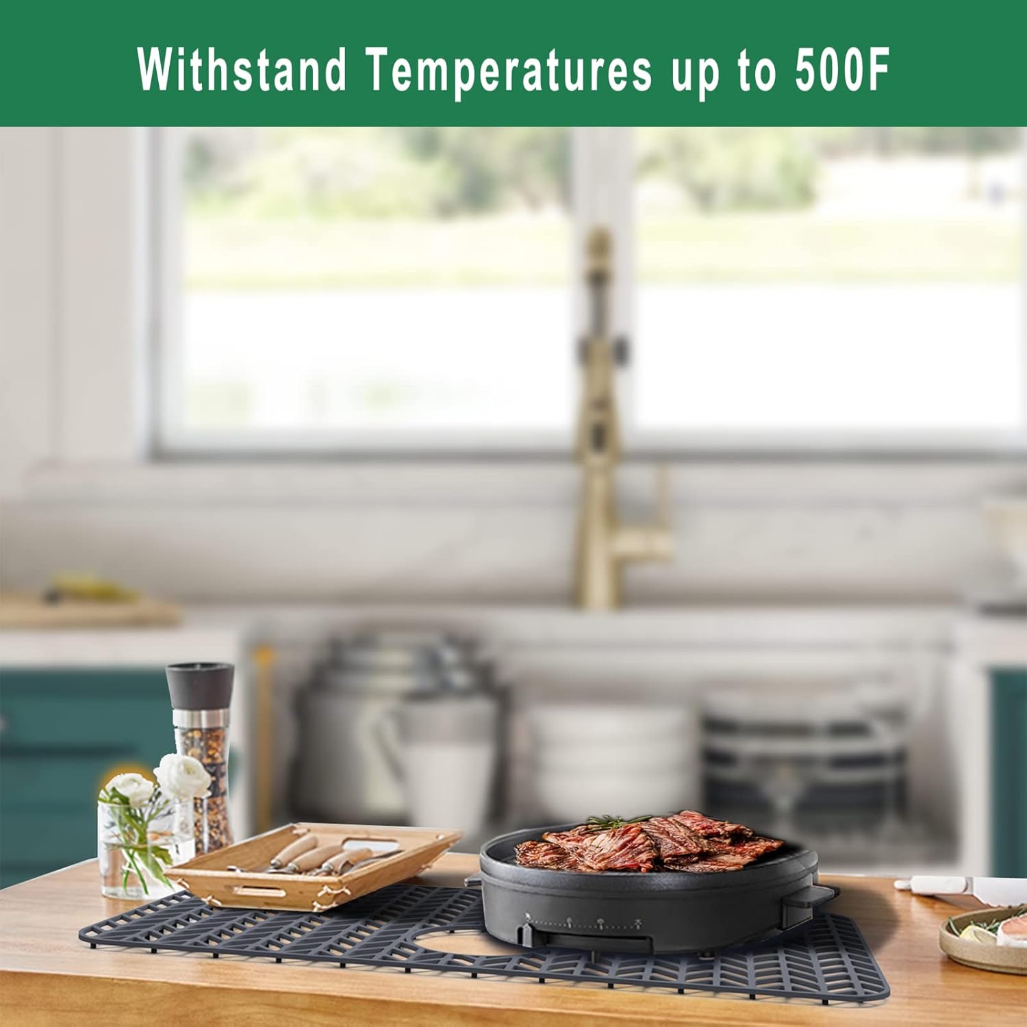 - 【Easy to Use】Our kitchen sink mats and protectors can handle up to 500f, heat-safe silicone for placing pots and pans in sink directly from stove, the superior finish looks sleek, modern and stylish in your kitchen sink