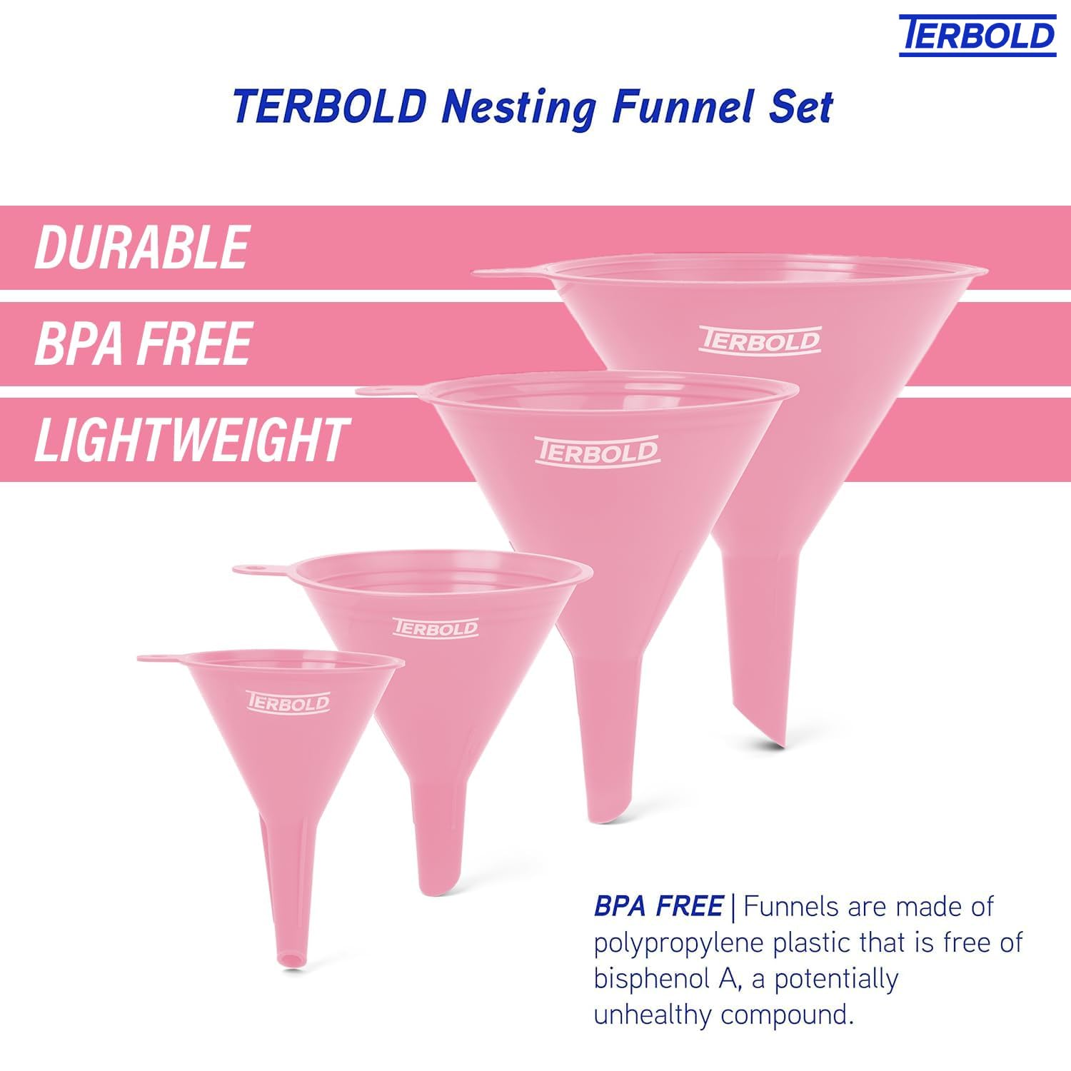 - BPA FREE | Funnels are made of polypropylene plastic that is free of bisphenol A, a potentially unhealthy compound