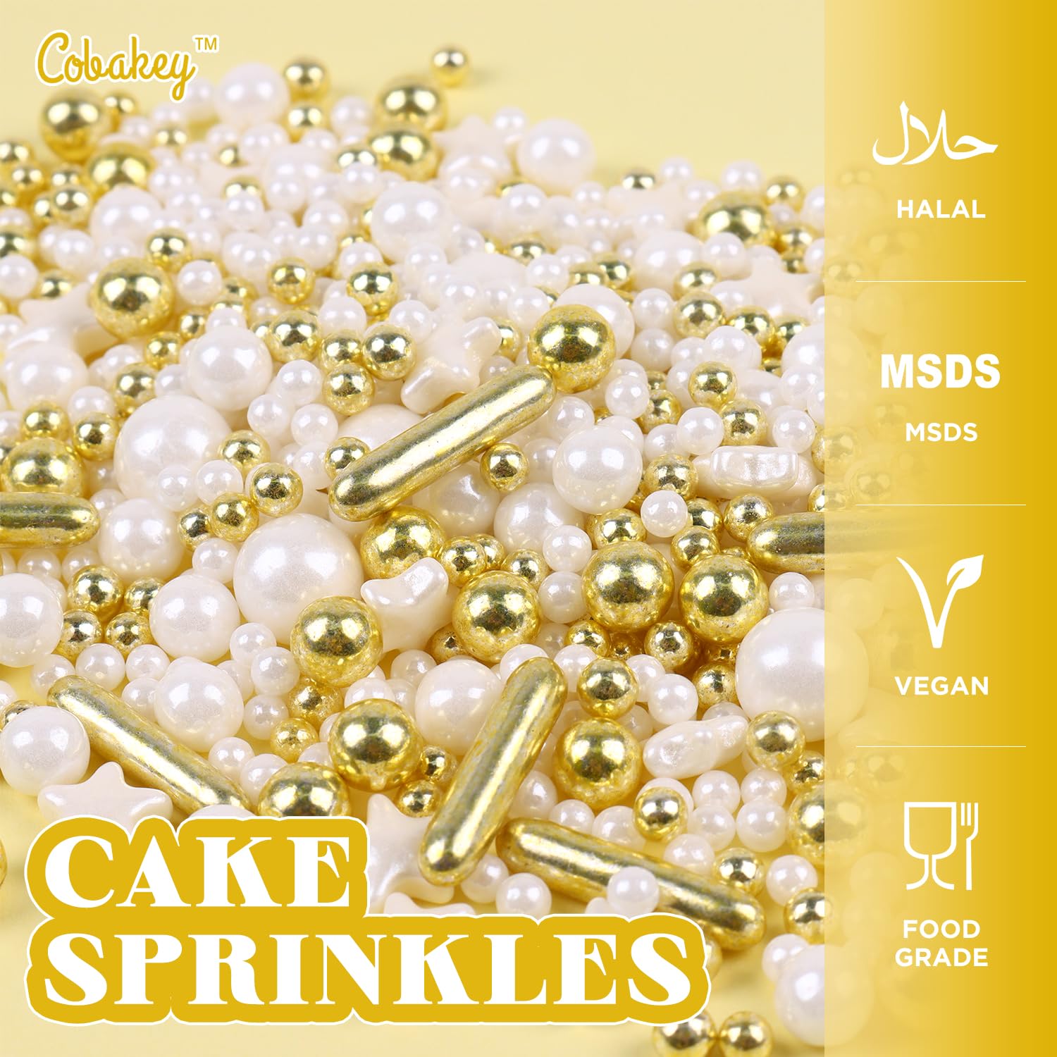 - Customer Service: Cobakey Store has been committed to creating a distinctive cake decorating style, we hope our sprinkles can bring sweetness to your life. ATTENTION: The Bigger The Sugar, The Harder It is. It is Recommended to Eat Small Sugar, Or Melt It in Your Mouth Rather Than Bite It.
