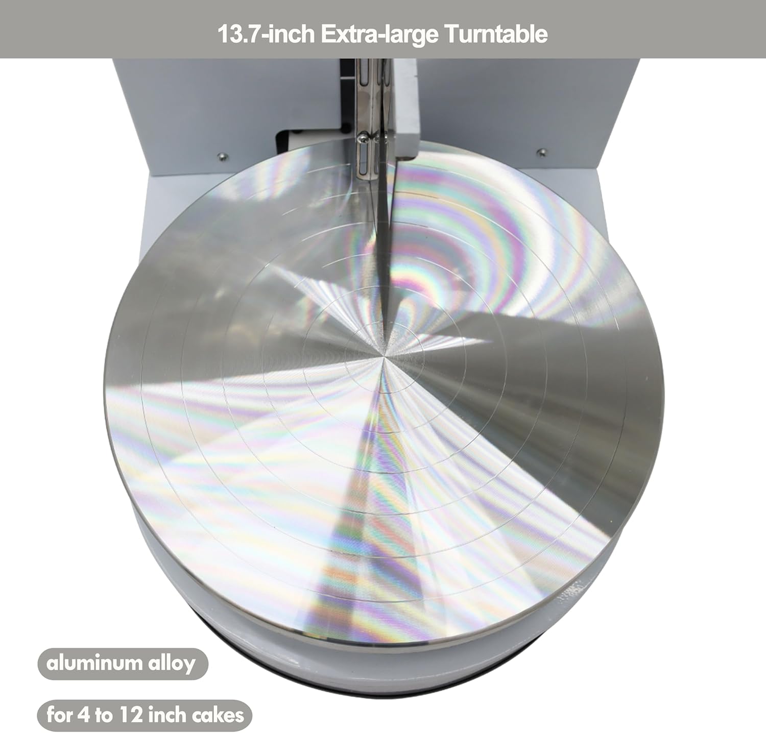 - 【13.7inch Turntable】The 13.7-inch extra-large turntable is perfect for making cakes ranging from 4 to 12 inches. It is made of durable aluminum alloy for long-lasting use. The 1mm thick stainless steel spatula features laser-engraved measurements, allowing you to efficiently apply frosting while minimizing waste.