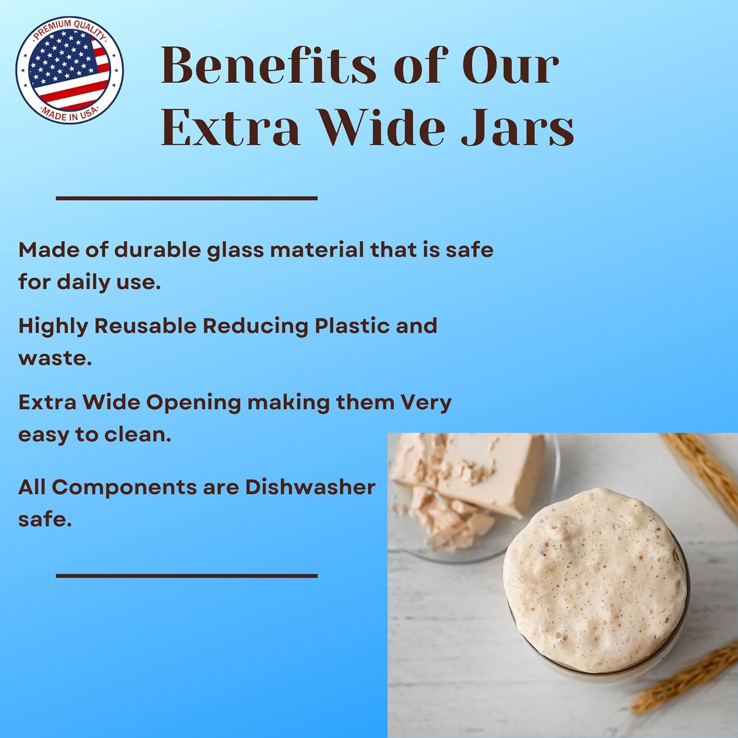 - Durable Design: Made from high-quality materials, our wide mouth jar is built to last. Say goodbye to flimsy containers that won't stand the test of time.