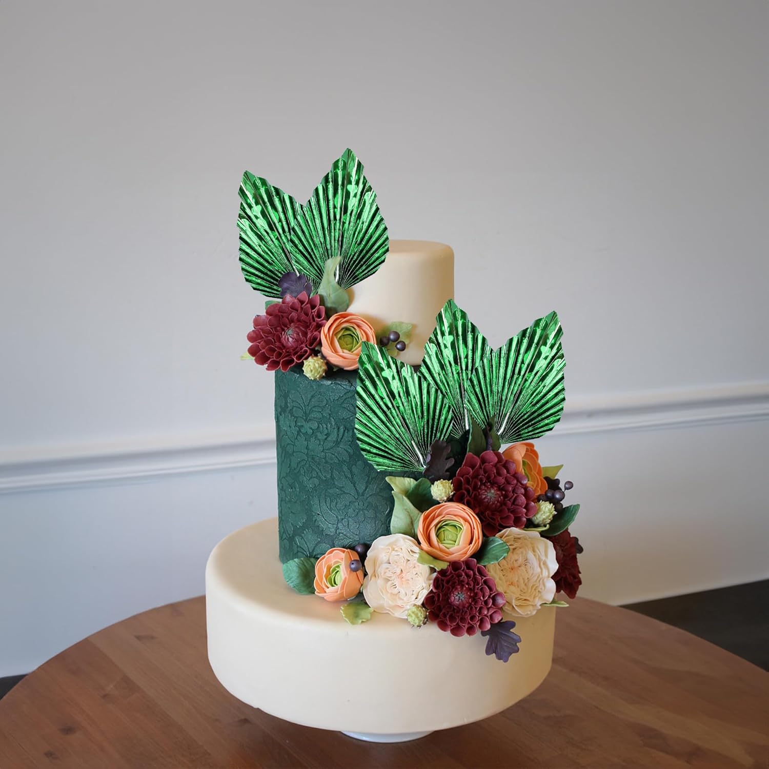 - -Premium Material: These Paper Palm Fan Cake Toppers are made of high quality paper material and food-grade toothpick, very safe to put them on cakes, cupcakes, ice cream, fruits, pie, dessert, cheese or any dish and food appetizer you want to decorate Wedding theme Party decorations.