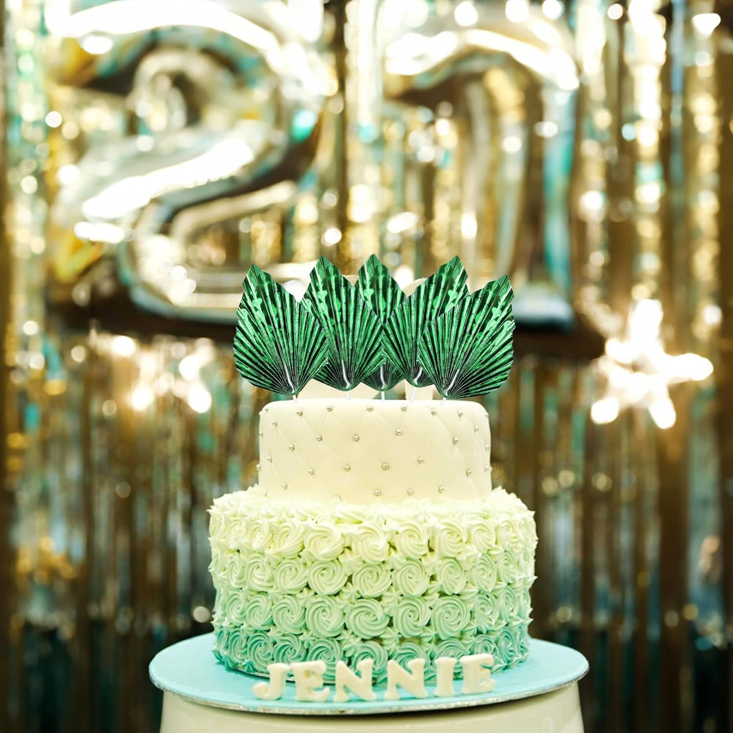 - -Package included: 6Pcs Paper Palm Fan Cake Toppers. Comes with unassembled, so you can insert into your cake with stick, which make your cake more interesting.
