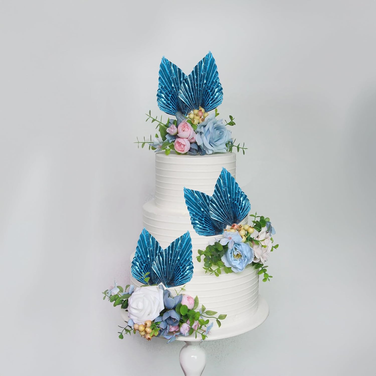 Gyufise 6Pcs Paper Palm Fan Cake Toppers Palm Spear Leaves Fan Cupcake Toppers Cake Insert Decorations Craft DIY Cake Bakeware Decoration for Birthday Party Wedding Party Decor Supplies Light Blue