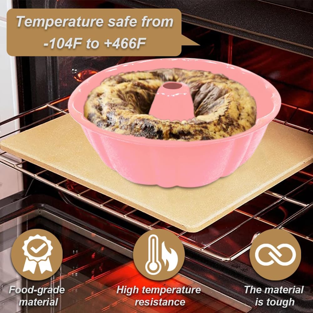 10 inch Silicone Bundt Cake Pan, Non-Stick Silicone Fluted Pans, ome Baking DIY Cake Mold for Cake, Jelly, Bread, Chocolate, Para Gelatinas (Red) (Pink, 1 Pack)