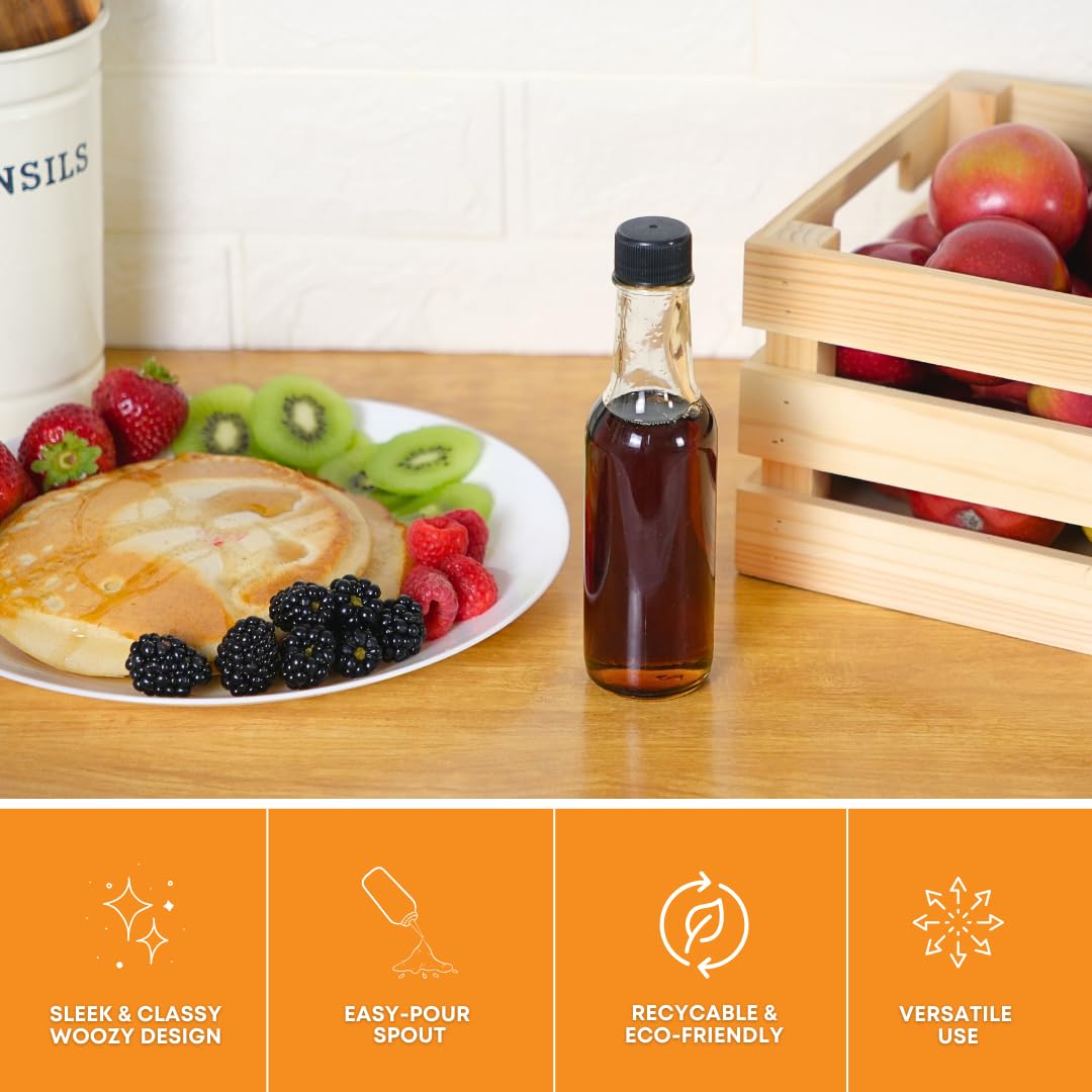 - [Multipurpose Use] Our clear woozy bottles are perfect for a variety of liquids, including oils, vinegars, liquor, syrups, and more. Get ready to impress your guests by serving your homemade hot sauce in our 5 oz bottles with ease!