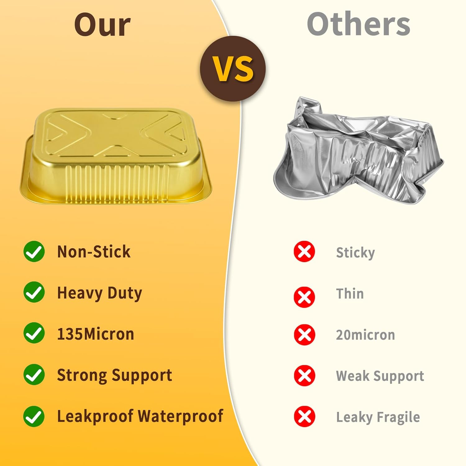 - 【Heavy Duty Aluminum Pans with Lids】Our 5 lb Aluminum Foil pans with lids are sturdy enough to hold your heaviest meals! Not all foil pans are created equal, ours are extra thick and 2 times thicker than regular silver foil pans, so they won't tip over and lose their shape! These small aluminum pans come with leak-proof PP lids, perfect for baking, cooking, roasting, freezer storage, and takeout containers.
