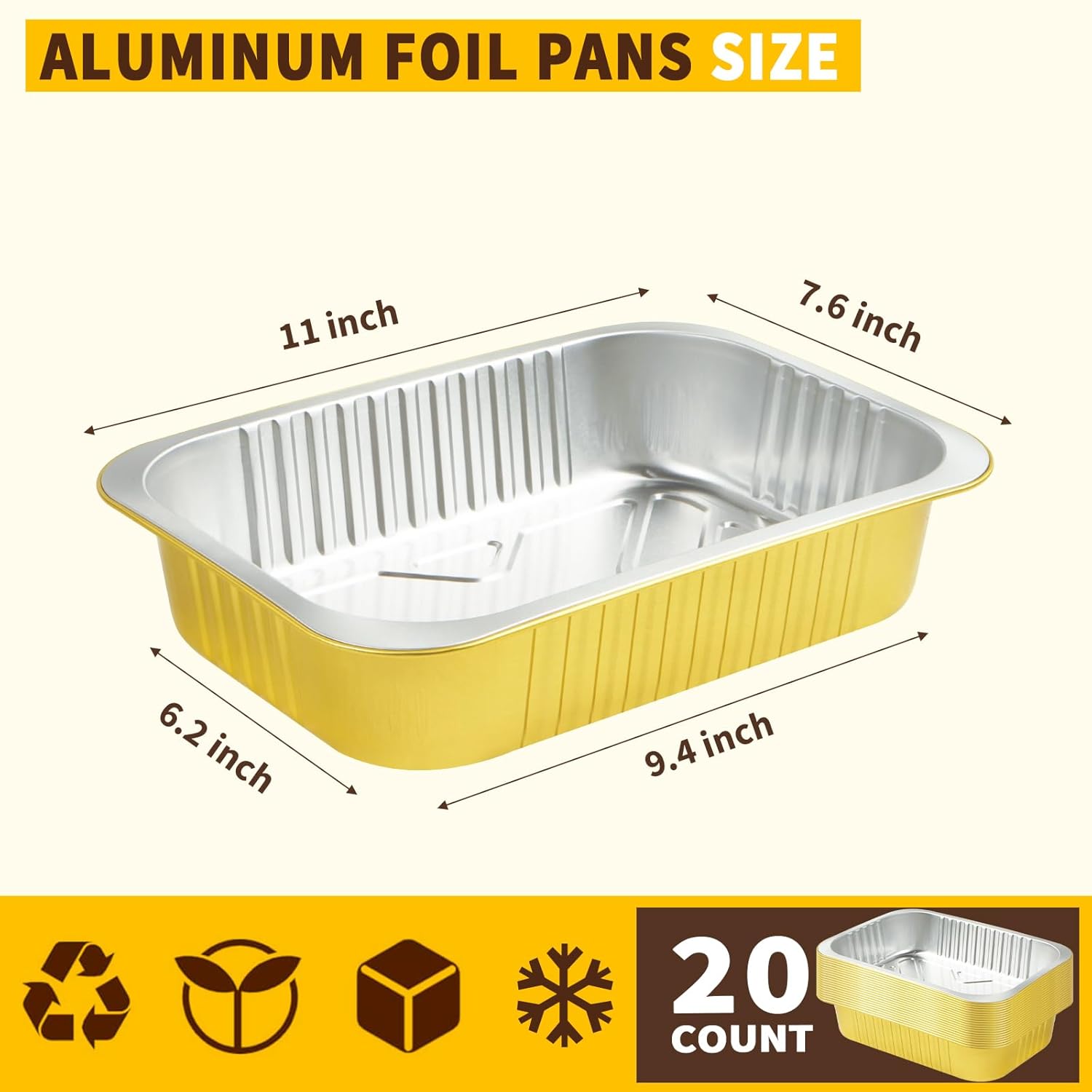 - 【20 Pack Foil Pans with Lids】You will get 20pcs aluminum foil pans and 20pcs PP lids (Size: 11"×7.8"×2"). The 5 lb deep portable container is perfect for your lunch. These aluminum foil baking pans with lids are great for baking and making bread. These takeout tin pans have smooth edges so no need to worry about stabbing your hands, and the PP lids seal tightly to prevent leaks and spills from the sides.