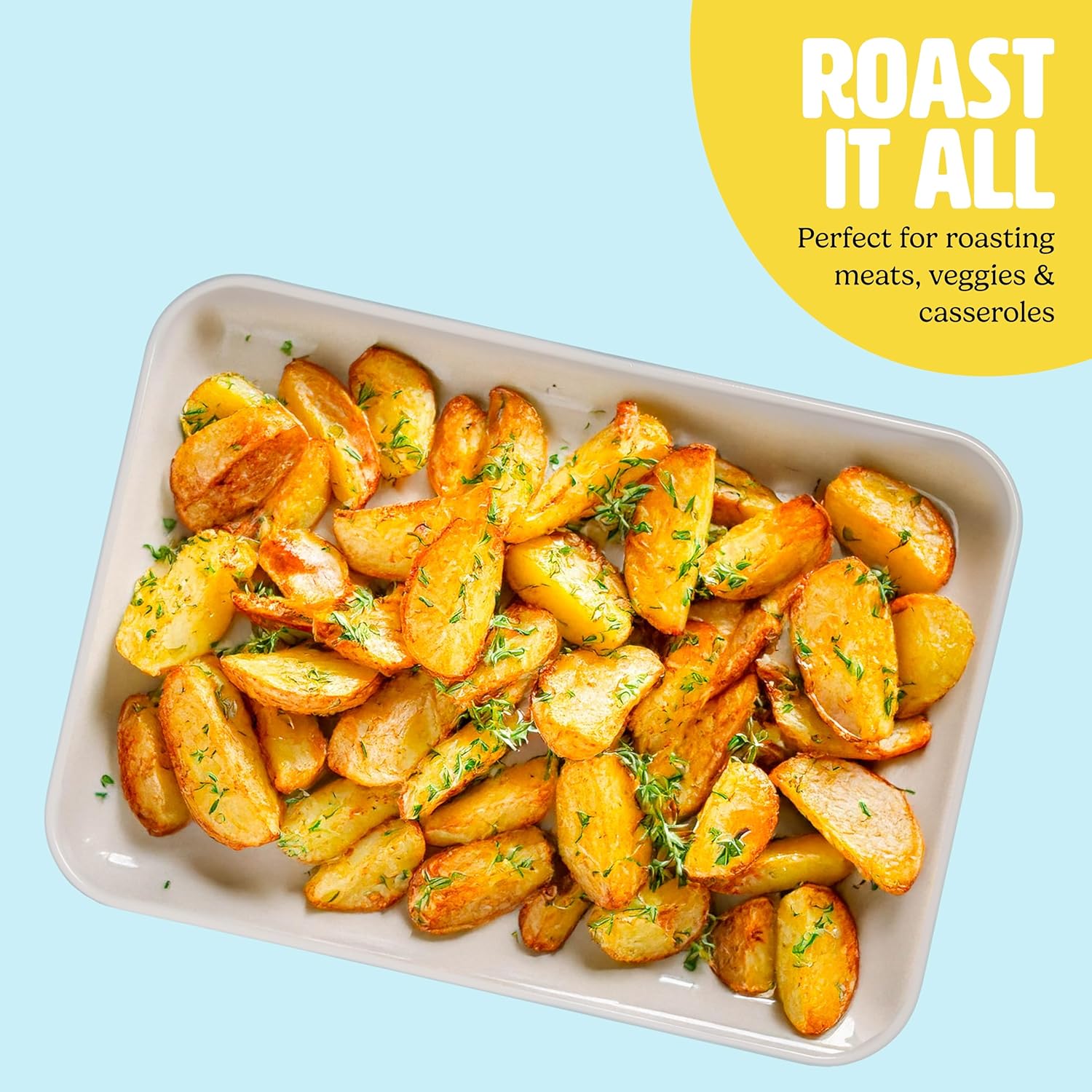 - BAKE LIKE A TASTY CHEF: This 14 x 10-Inch roasting pan is the same bakeware used by Tasty chefs in their must-watch recipe videos. Roast, bake, and cook like a pro in your own kitchen!