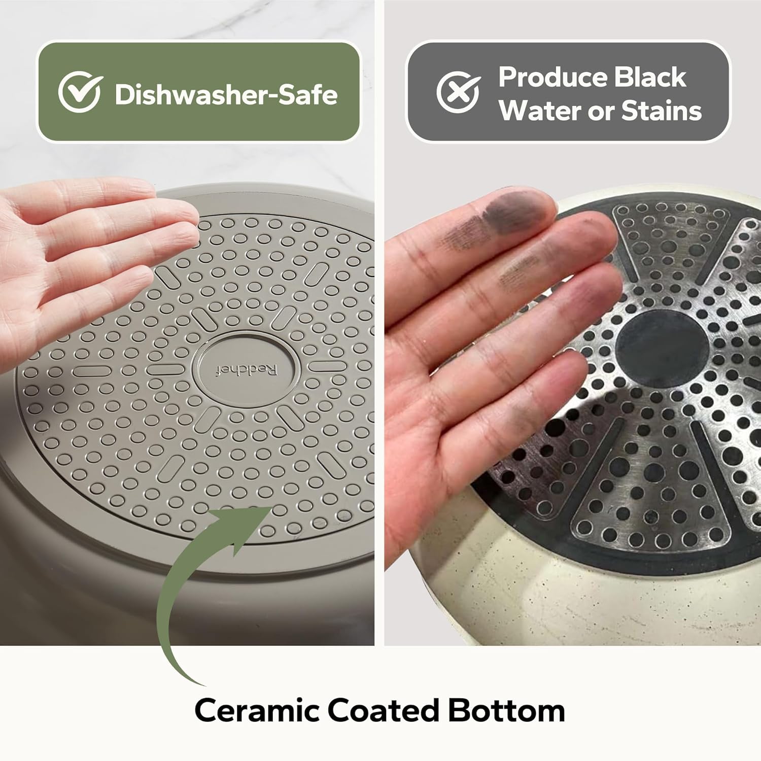 - Non-Toxic Ceramic Coating: Redchef's PTFE/PFOA/PFAS-free ceramic coating ensures healthy, worry-free cooking. Eggs and steaks glide off effortlessly, while the healthy design prioritizes daily meal safety—‌combining the scratch-resistant durability of ceramic frying pans with the trusted smoothness of premium nonstick frying pans