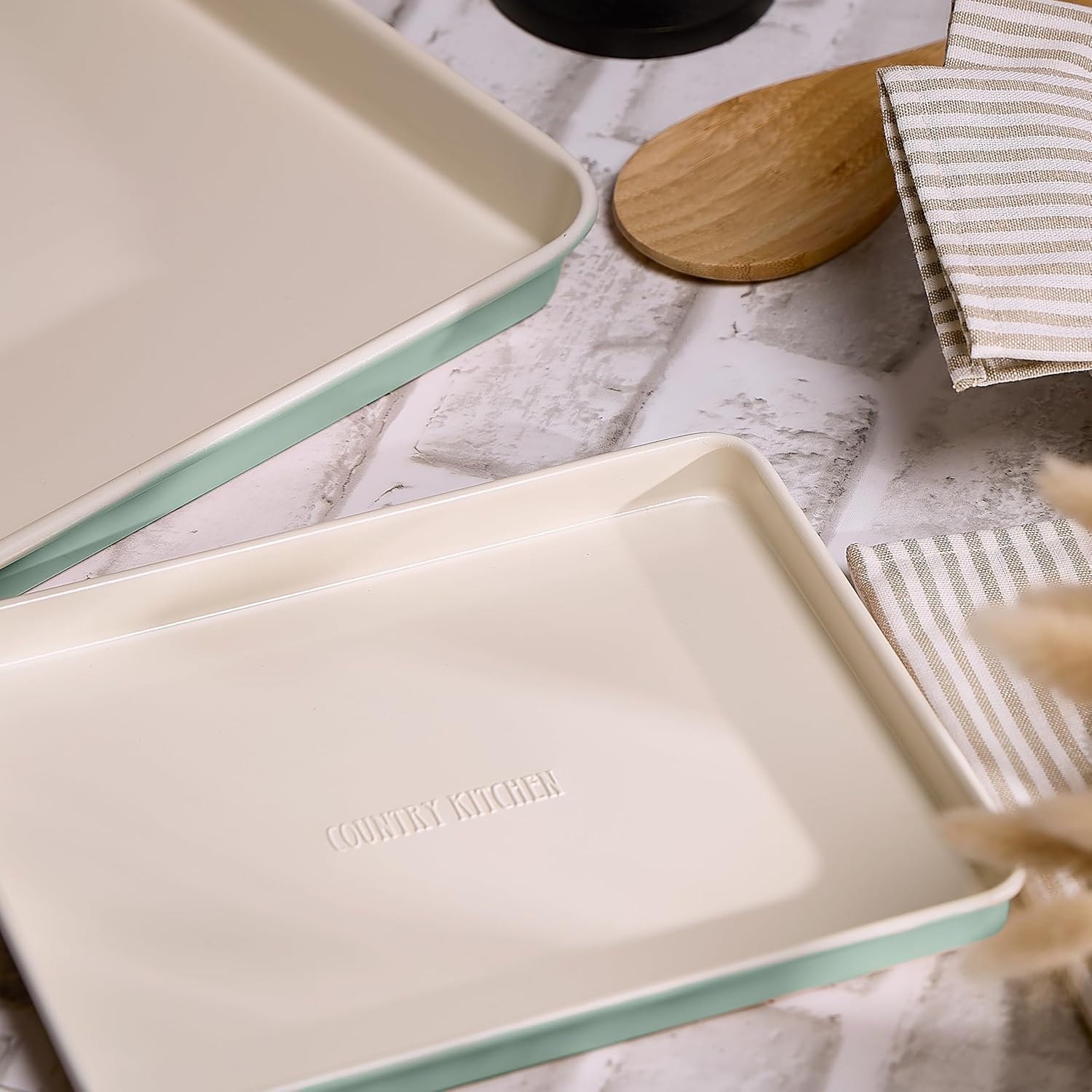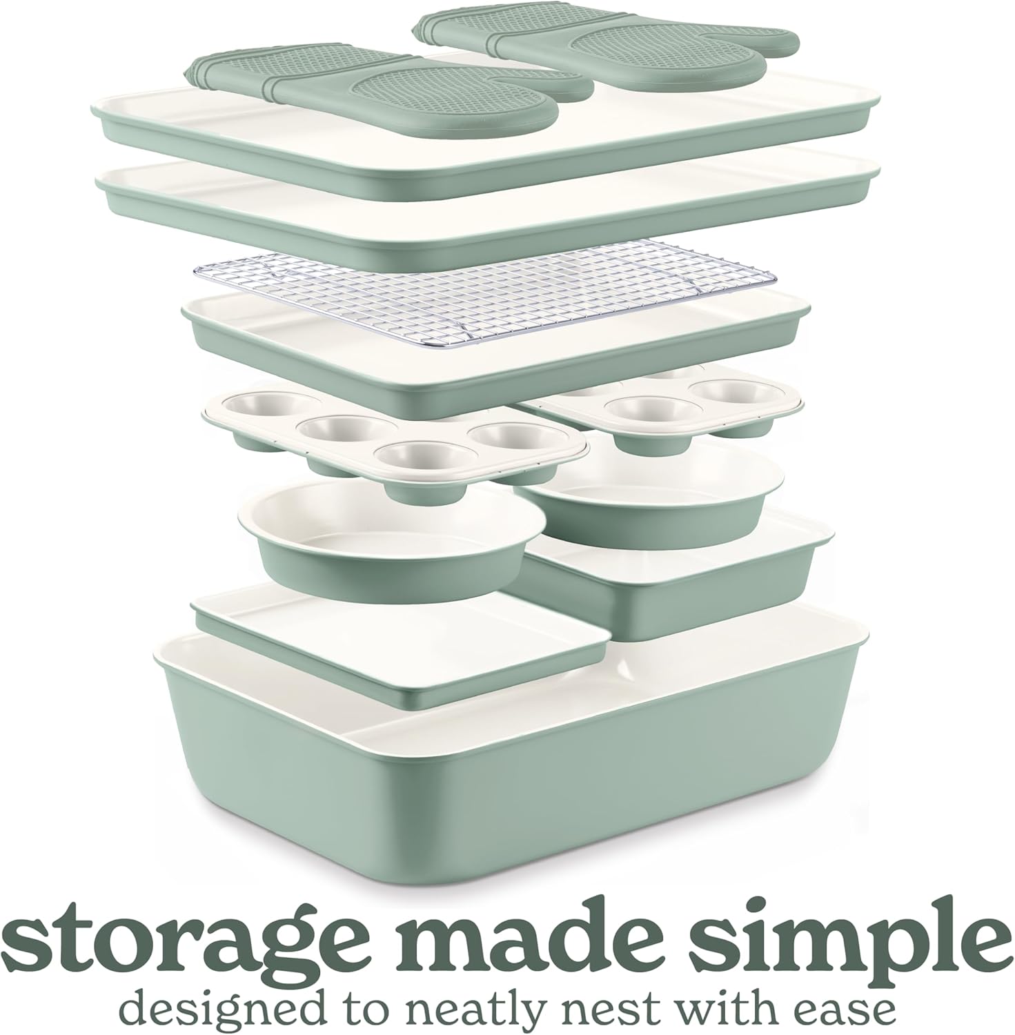 Country Kitchen Nonstick Stackable Bakeware Set - Deluxe Heavy Duty, Durable, Easy Release Baking Set, Sage, 13 Pcs with Handles