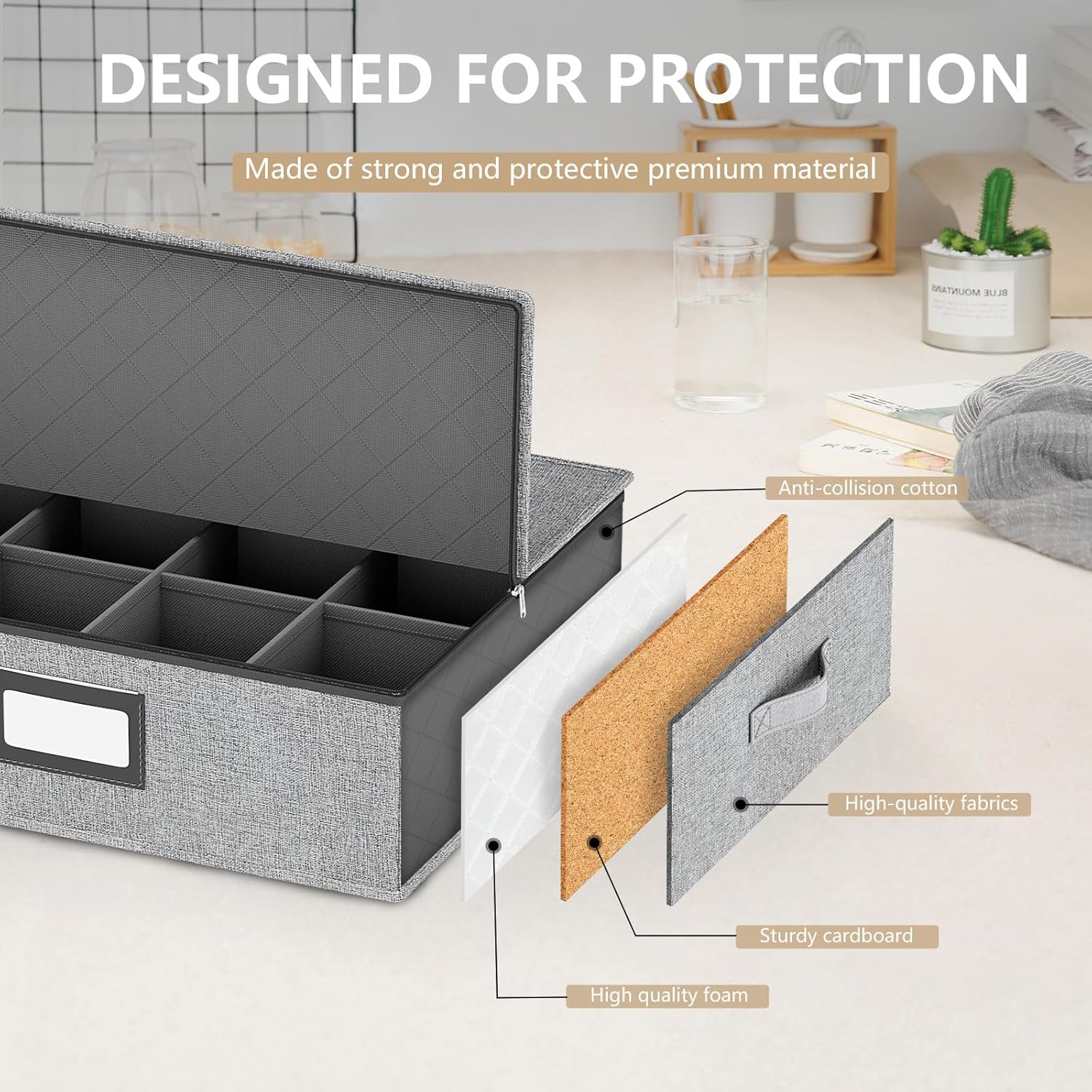 homyfort China Storage Containers (2 Pack Mug Storage Box, Grey)