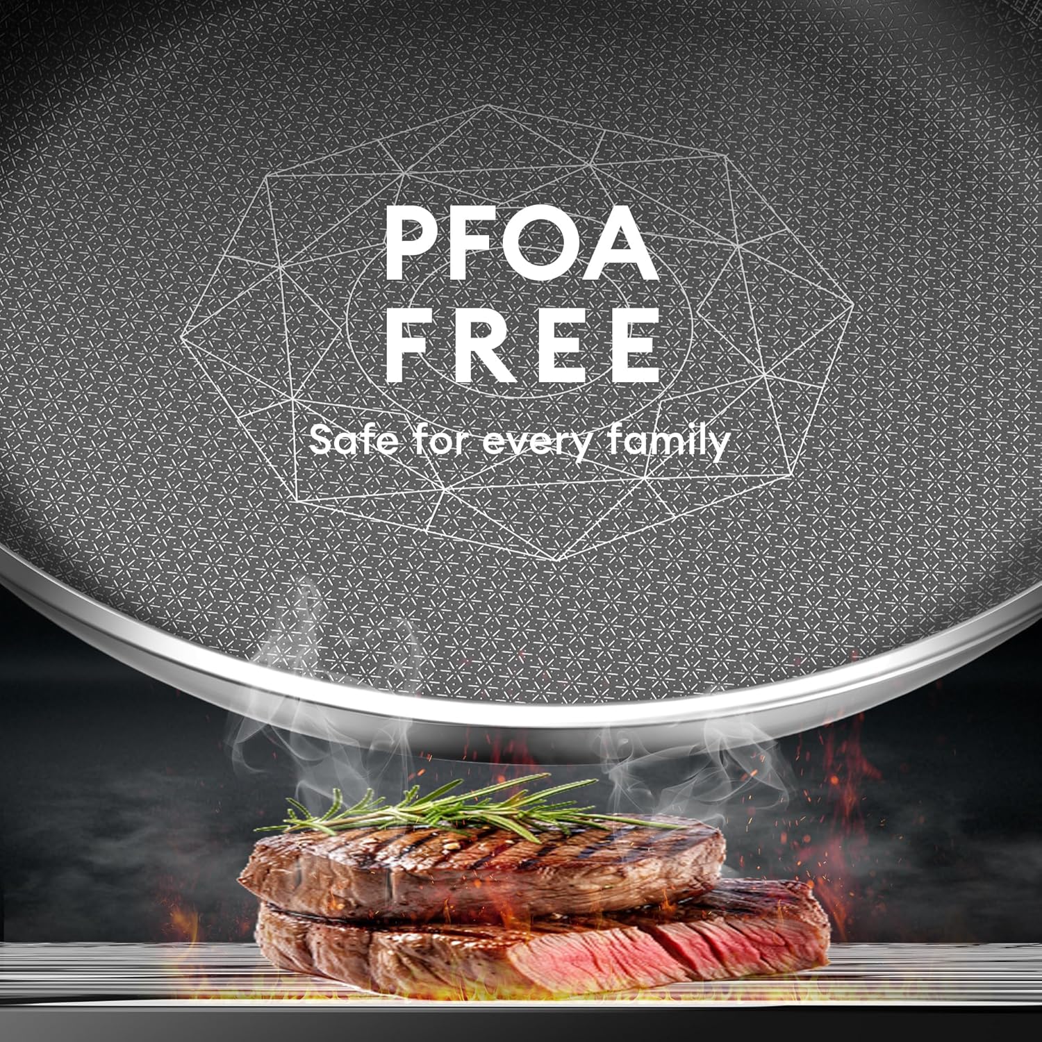 - 【Food-grade Stainless Steel Pan】: The 8 inch frying pan set is made of 3-layer stainless steel with aluminum core for even heat distribution, preventing hot spots & ensuring perfect searing every time. Oven-safe & rust-resistant for long-lasting durability