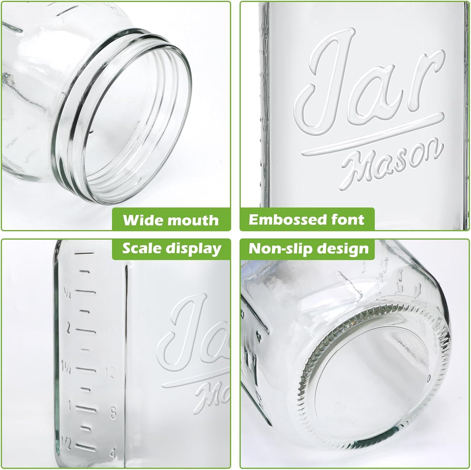 - Versatile Wide-mouth Jars - Featuring exquisite Jar patterns and scale lines, our mason jars can also elegantly serve as covered containers for overnight oats, DIY craft projects, and home decoration. Their aesthetic appeal and functional design make them equally suitable for creating unique gift displays when decorated as red ropes.