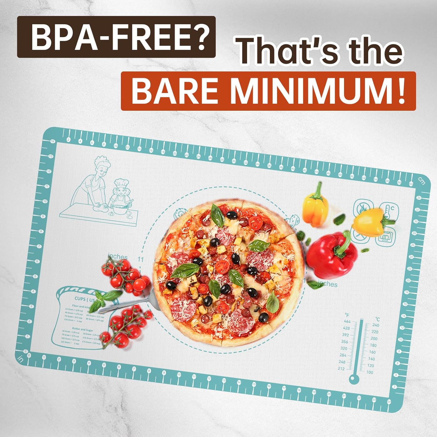 Non Stick Pastry Mat with 10 Quick Recipes, Silicone Dough Mat for Rolling, Silicone Mat for Baking Macaron, Cookie, Bread, Pizza,Surdough, Fondant Mat for Kitchen, Extra Large and Oven Safe