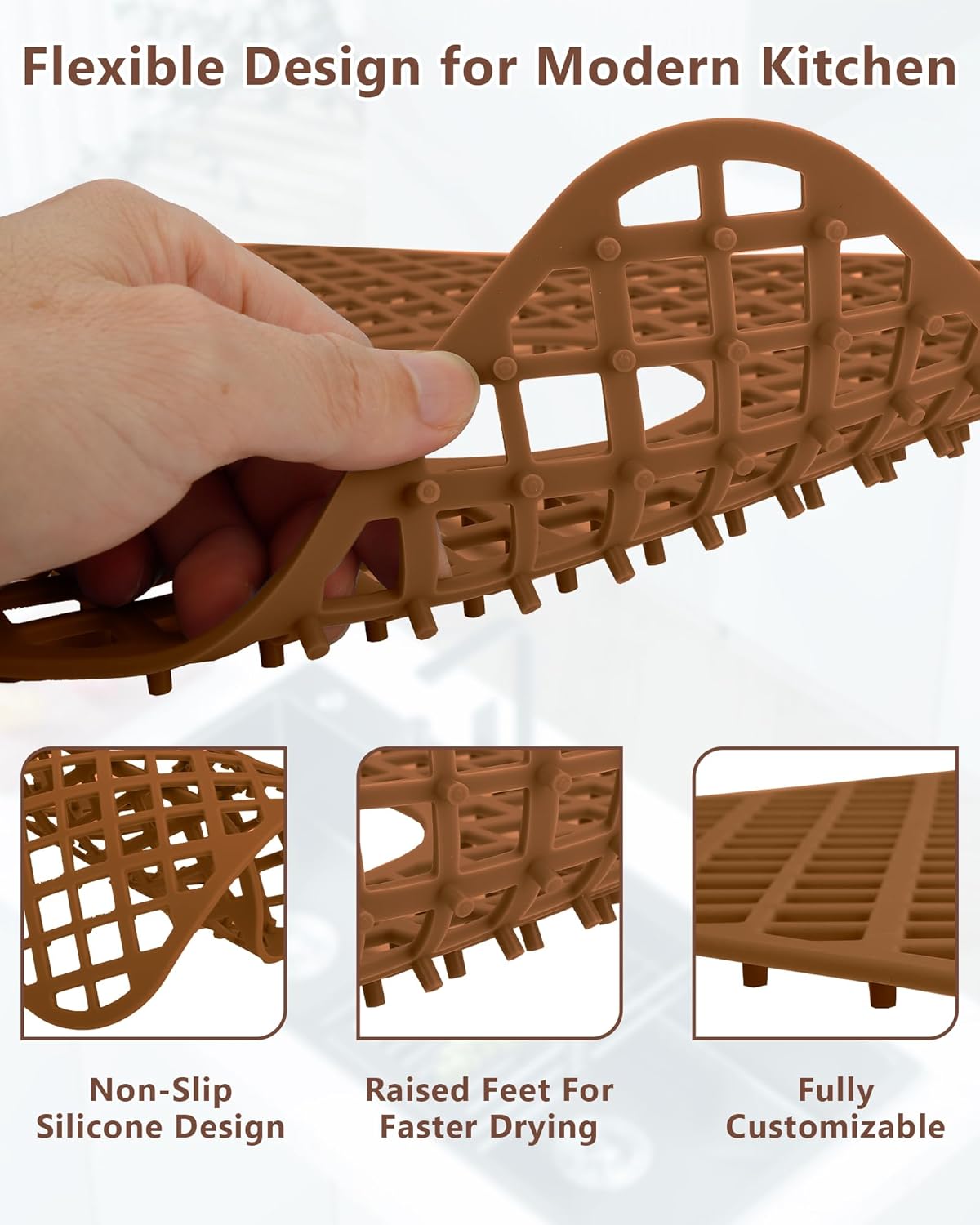 - Stylish Addition to Any Kitchen - Beyond functionality, this silicone sink protector enhances your kitchen's aesthetic. The lozenge pattern and neutral color options complement any decor style. Slim profile lays flat without curling edges. The textured surface adds visual interest while promoting airflow. This sleek protector maintains a clean, professional look. Practical protection meets contemporary design for discerning homeowners.